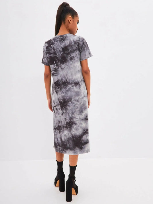 Set: women's orange t-shirt with rocker cat print and black tulle maxi skirt
